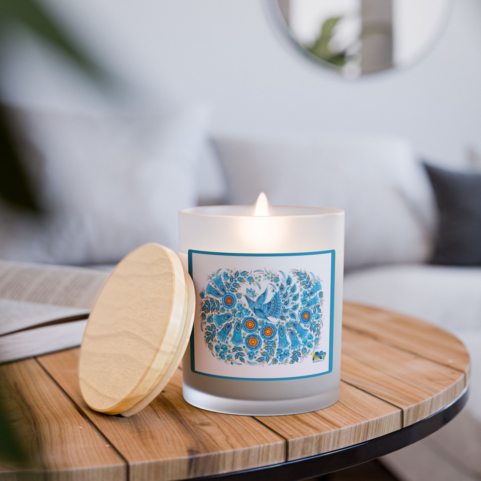 Made with a Coconut Soy Blended Wax, each candle delivers a burn time of 50 hours. Unique wooden wick that crackles gently as it burns, and a permanent adhesive label is imprinted with Petrykivka artwork by Ukrainian artist Halyna Nazarenko. This exquisite candle is more than just a light source—it’s an elegant piece of decor that adds a touch of beauty and lush scents to any room. Choose from six aromatic scents.